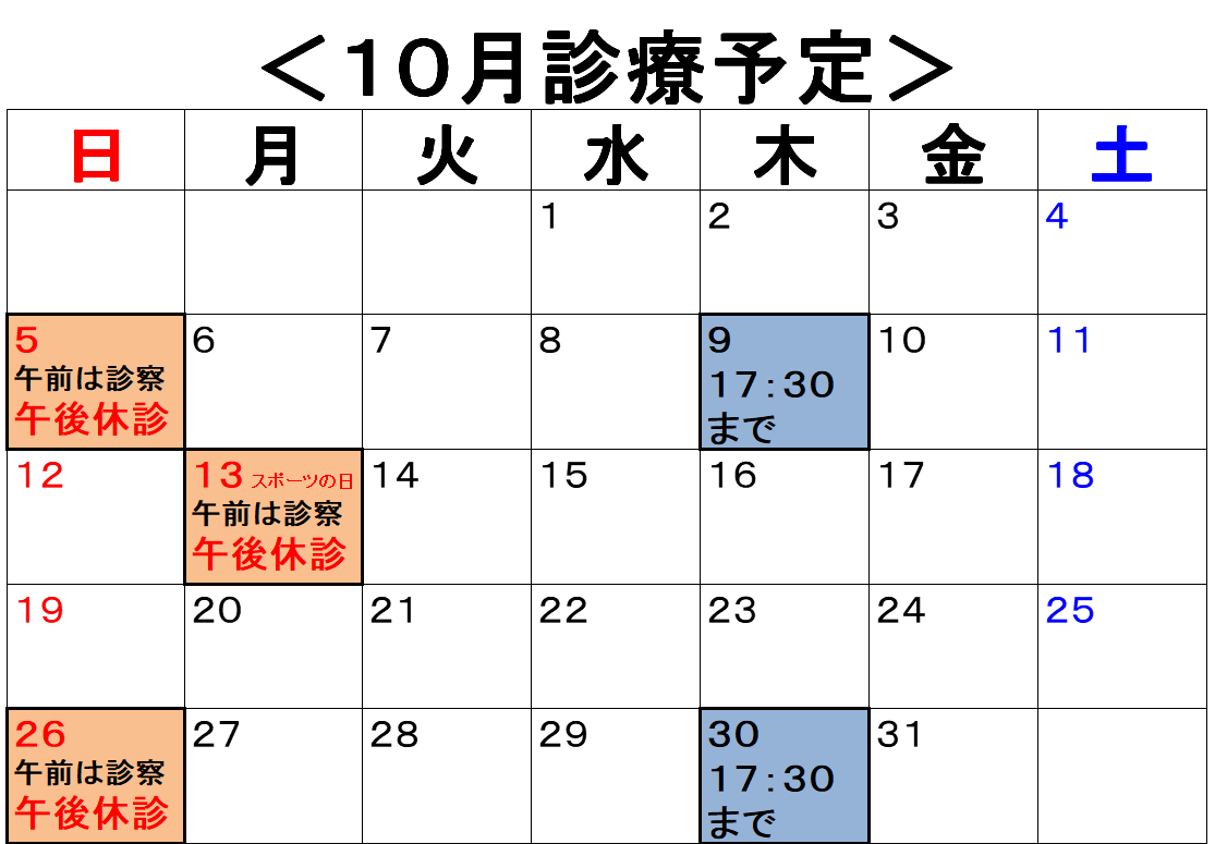<2025年10月の診療予定>