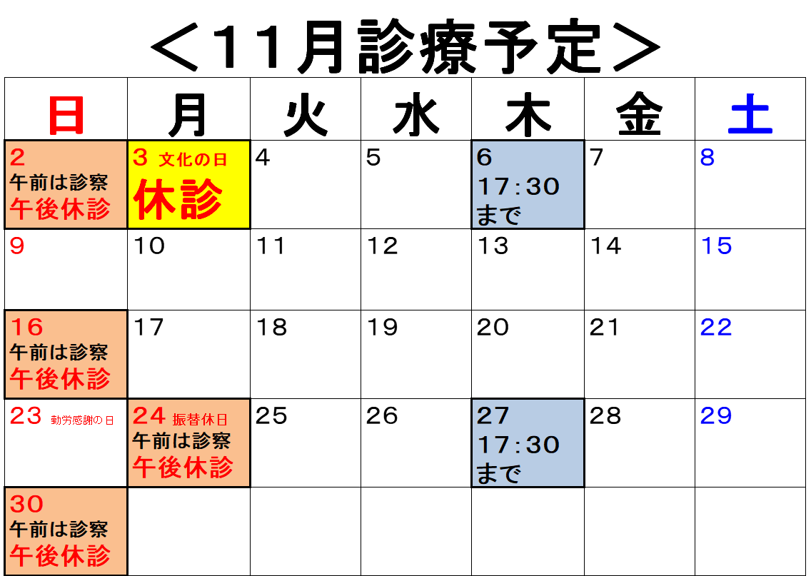 定休日はございませんが学会・会議出席などにより臨時休診する場合がございますのでご了承ください。