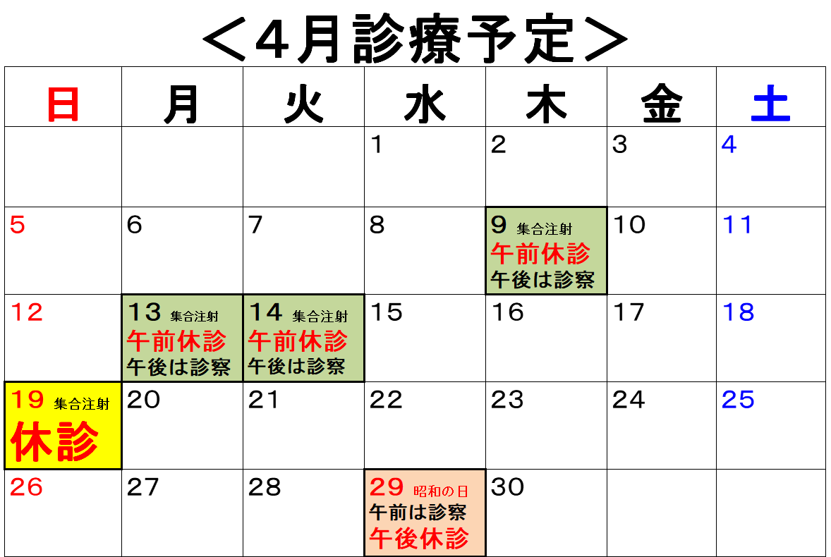 <2026年4月の診療予定>