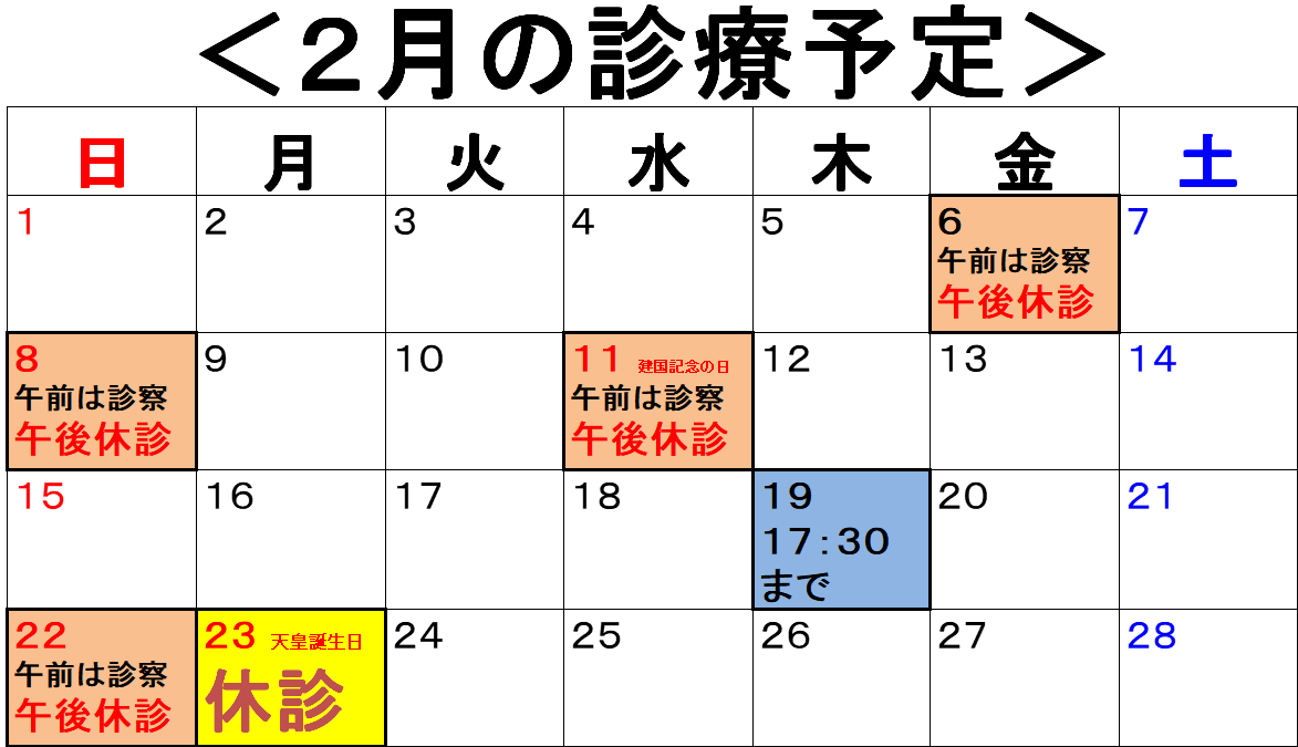 <2026年2月の診療予定>