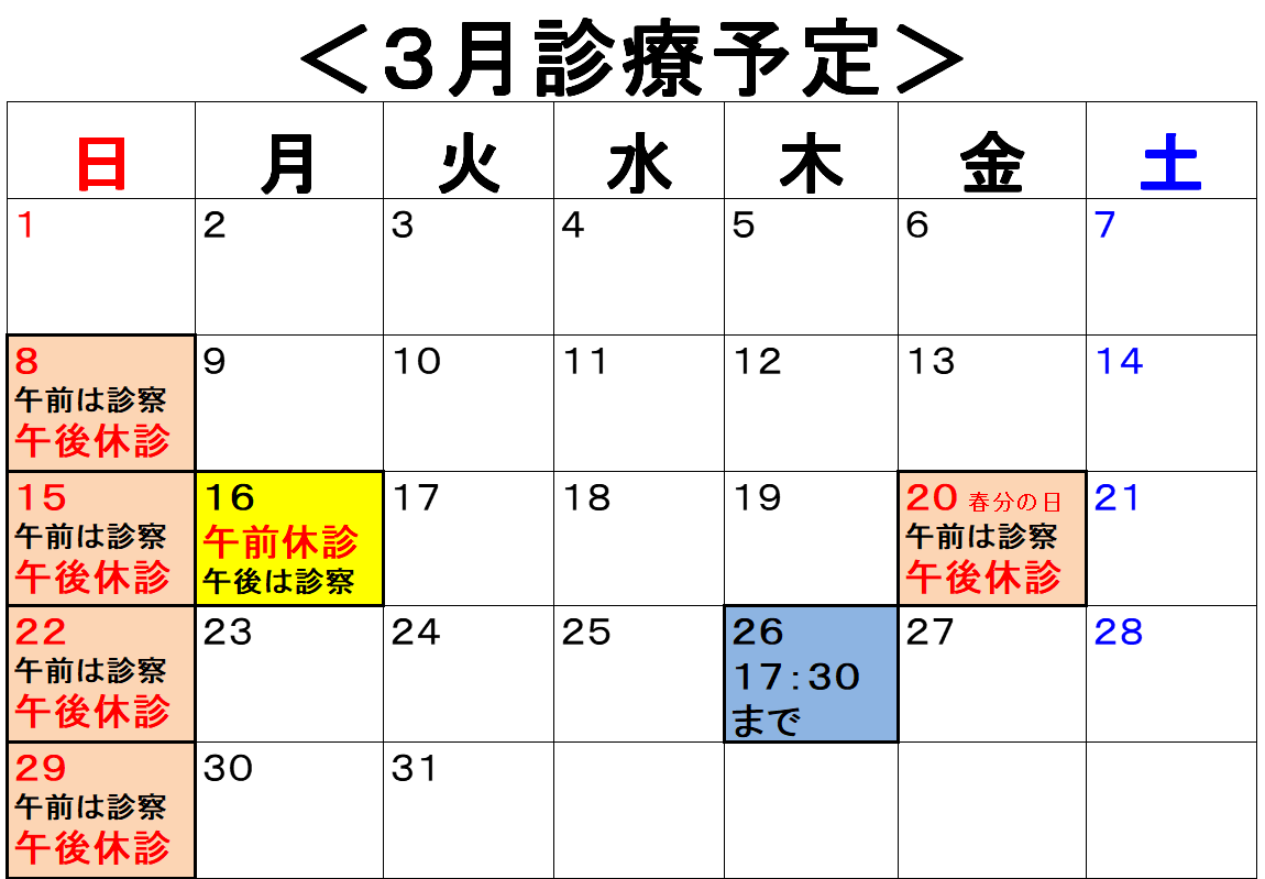<2026年3月の診療予定>